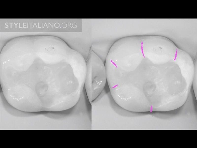 Fig.10 If we decide to use a bulk material to fill the entire cavity altogether, the Essential Lines will help us to form the occlusal anatomy without losing its proportions and in a simple way.