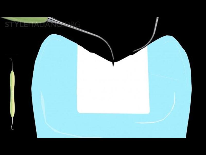 Fig.15 With the Fissura instrument we can draw the sulci and improve the marginal adaptation of the material, to reduce the finishing time and the restoration.